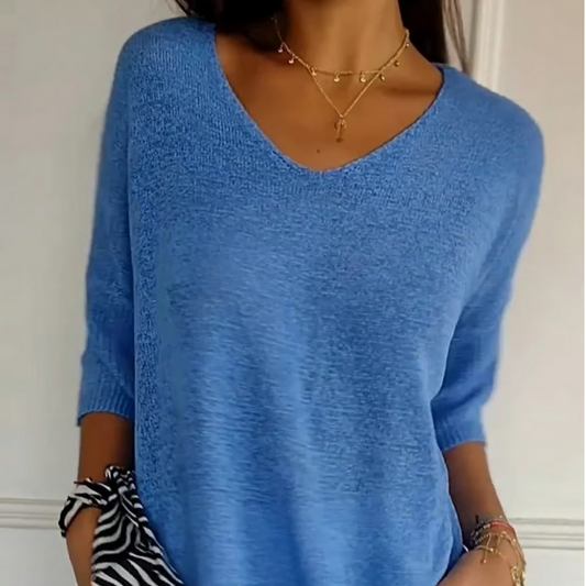 Stickad topp med V-ringning
